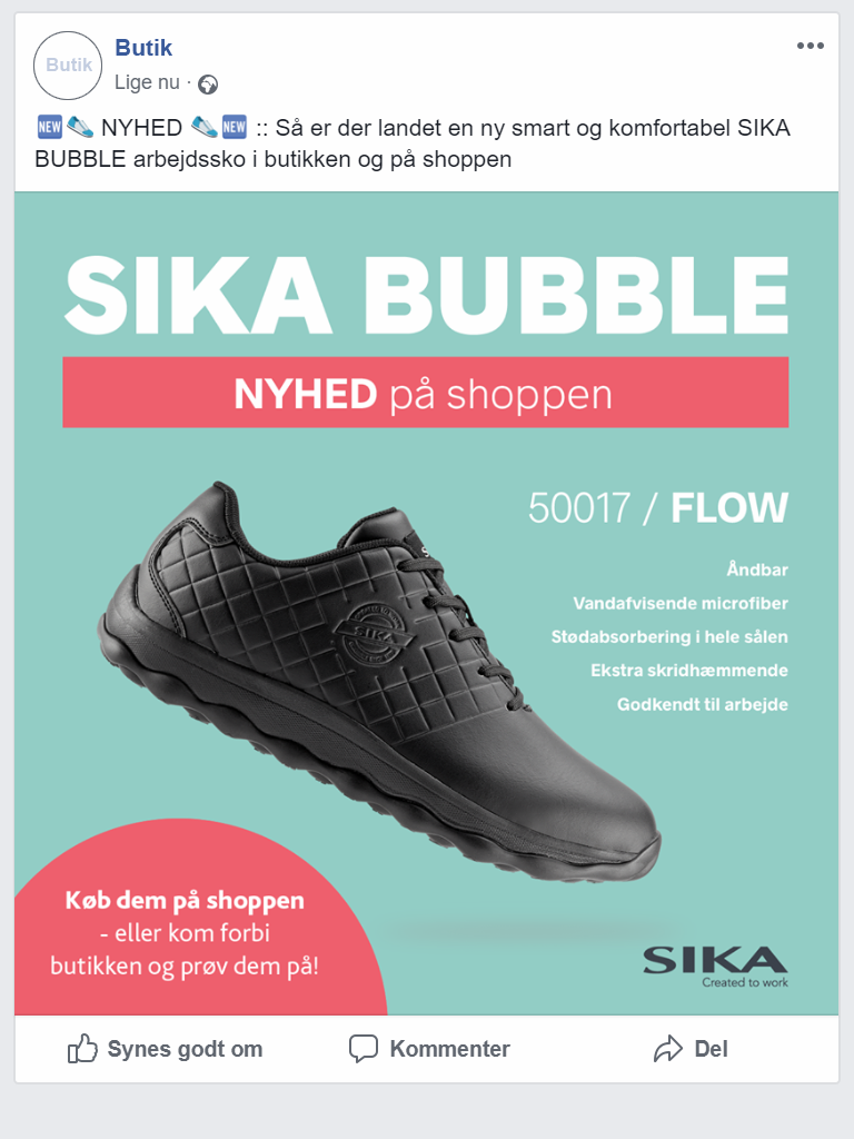 Har du muligheden for at præsentere SIKA BUBBLE via en skærm i butikken, så kan vores marketingsafdeling levere en video til dette brug - skriv blot en forespørgsel til lb@sikafootwear.dk. Vi vil efterfølgende tage kontakt til dig for yderligere info.