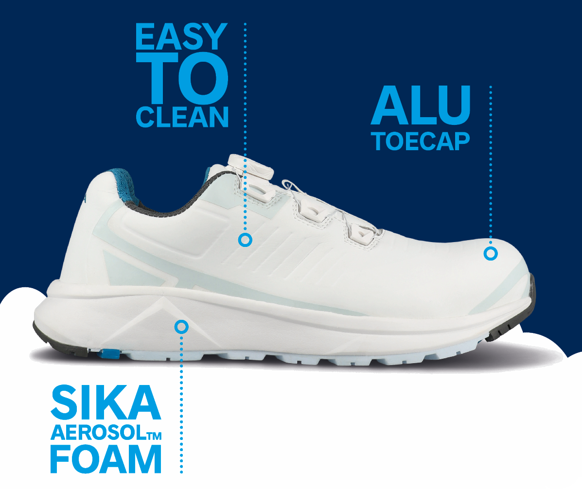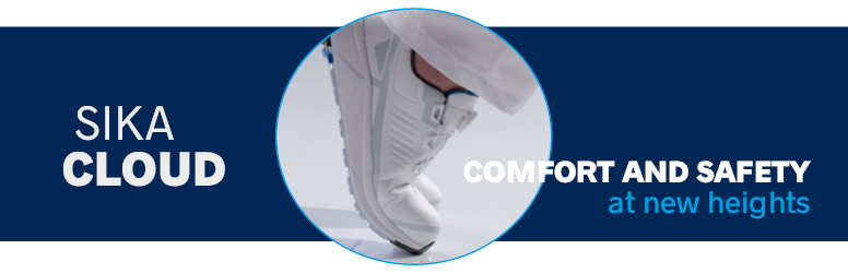 SIKA Cloud-serien er det nyeste gjennombruddet innen vernesko for næringsmiddel- og legemiddelindustrien. Skoene er utrolig lette, og kombinasjonen av en lett tåbeskyttelse av aluminium og den lette mellomsålen av mykt aerosolskum gir følelsen av å gå på skyer.