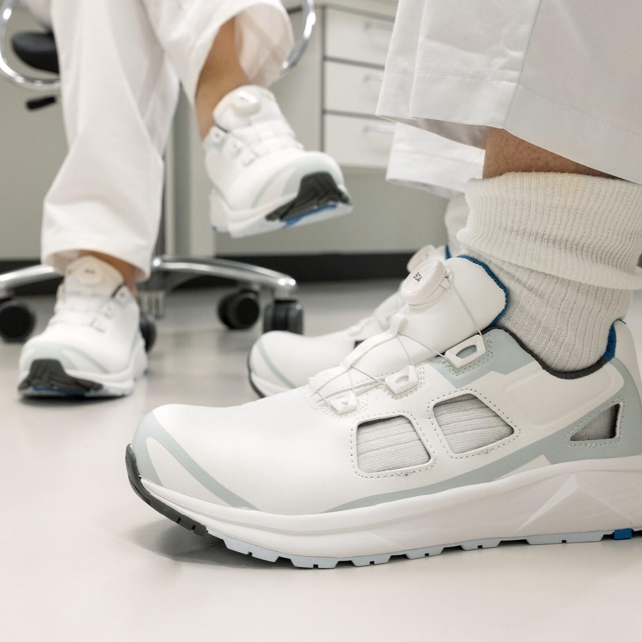Mykt og støtdempende materiale kombinert med den nyeste teknologien sikrer at skoene føles behagelige og fleksible gjennom hele arbeidsdagen.
