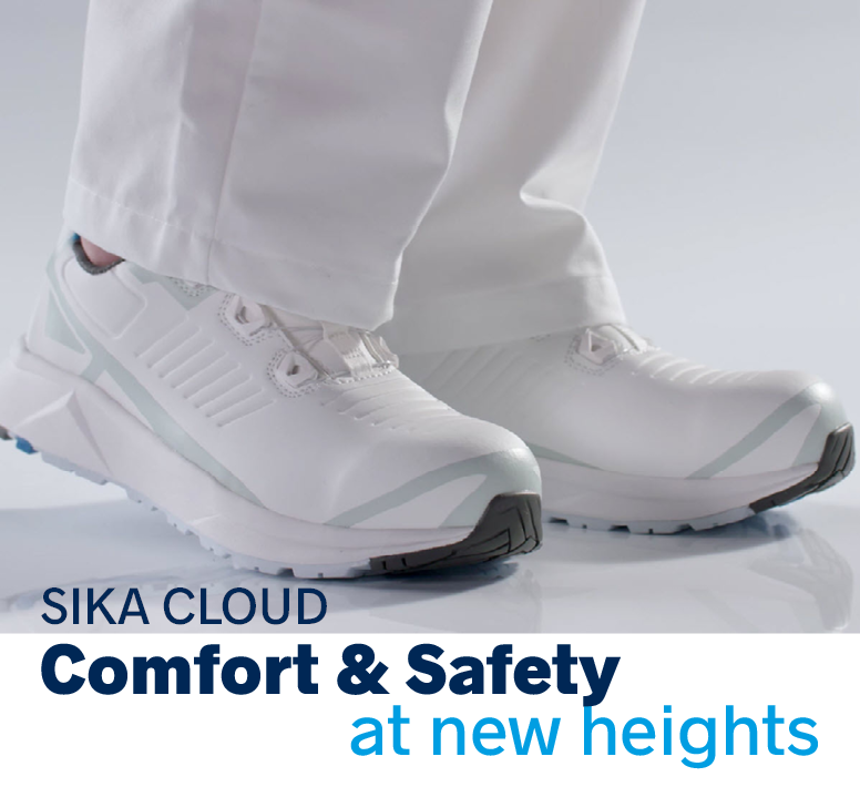 Komfort og sikkerhet er avgjørende for at medarbeiderne dine skal kunne yte maksimalt – gjennom hele arbeidsdagen. Med den nyeste teknologien for støtdemping, passform og sklisikre såler er SIKA Cloud det enkle valget innen sertifisert sikkerhet for legemiddel-/næringsmiddelindustrien.