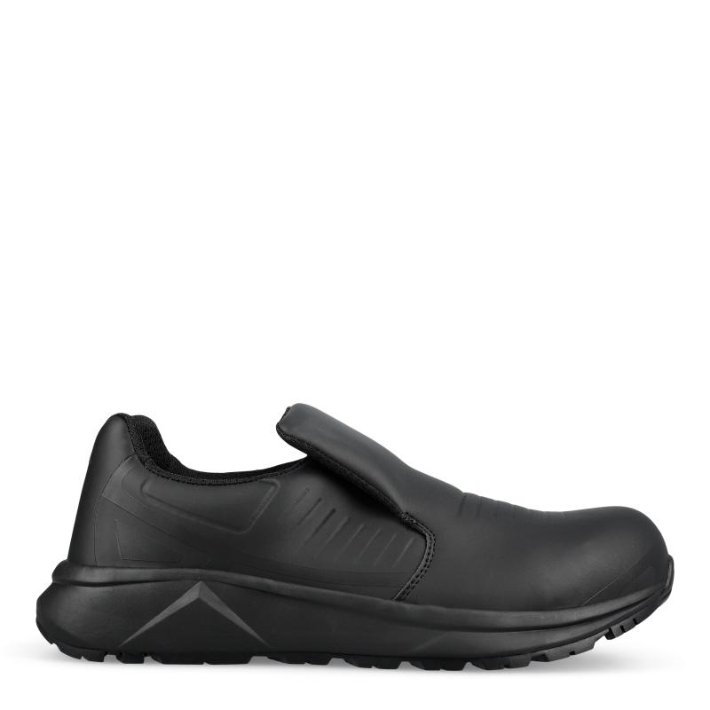 Lett vernesko med Slip-on-funksjon, sertifisert i samsvar med de nye standardene i 2022. Perfekt for ansatte i medisin- og næringsmiddelindustrien, der det stilles høye krav til hygiene. Overdelen er laget av vannavstøtende mikrofiber, som i kombinasjon med en glatt design gjør det enkelt å tørke av skoen. Kan tørkes av med etanol. Skoens Slip-on-design gjør den enkel å ta av og på raskt. Den lette tåbeskyttelsen av aluminium beskytter tærne mot tunge fallende gjenstander. Yttersålen, som er laget av gummi, gir god kontakt med underlaget og er ekstra sklisikker. Mellomsålen er laget av mykt, støtdempende EVA-skum (SIKA Aerosol™ Foam), noe som gjør dette til en lett, komfortabel og fleksibel sko. Den pustende innleggssålen er støtdempende, og den er laget av blant annet upcycled PU-skum, som er skumrester fra produksjon av innleggssåler. ESD-godkjent.
