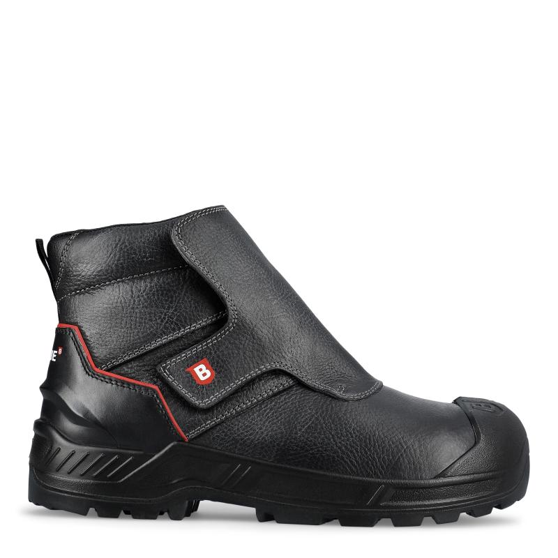 Brede, robuste vernestøvler med enkel Velcro®-lukking, som er godkjent som sveisestøvler. Yttersålen er av ekstra slitesterk, fleksibel og støtdempende PU/nitrilgummi, og den kan stå på varme overflater som er opptil 300 °C. Sålen har en stabiliserende gelenk som motvirker vridning og fordeler trykket fra foten over hele sålen. Overdelen er av slitesterkt, pustende og vannavstøtende lær som former seg etter foten. Innleggssålen av PU er både støtdempende og svettetransporterende. Støvelen er ESD-godkjent, og den har lukket tungen og en ekstra slitesterk ProNose.